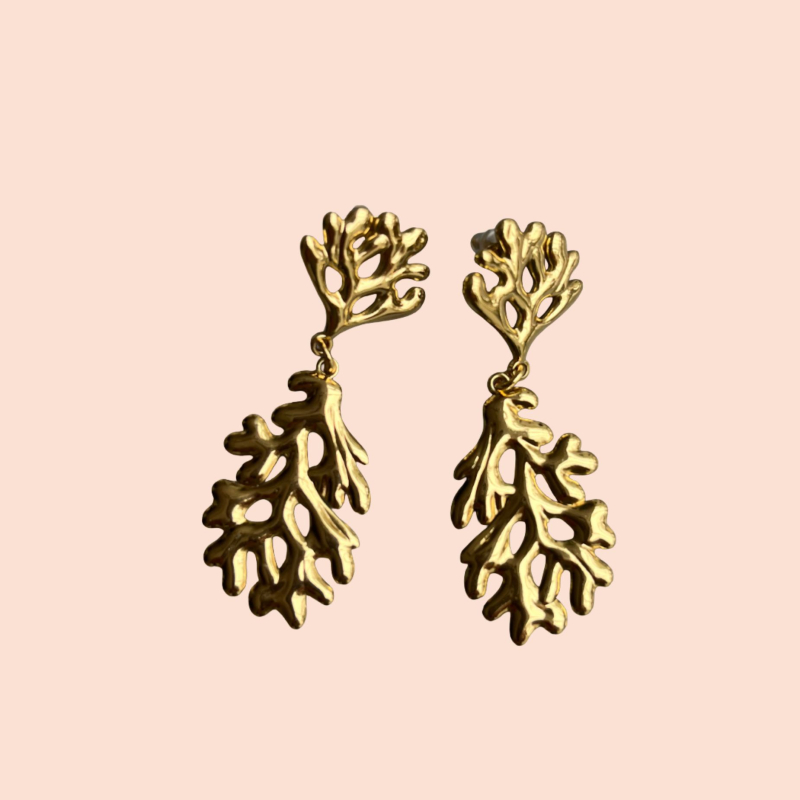 Coral Hanger Oorbellen – Natuurlijke elegantie met een gouden touch