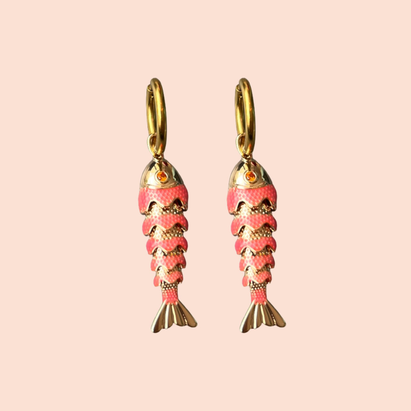 De Gold Fish Bubble Hoops brengen instant good vibes — vrolijk, elegant en nét een tikkeltje eigenzinnig. De gedetailleerde visvorm met subtiel gouden glans en oranje oogje geeft deze oorbellen een unieke uitstraling die meteen de aandacht trekt.