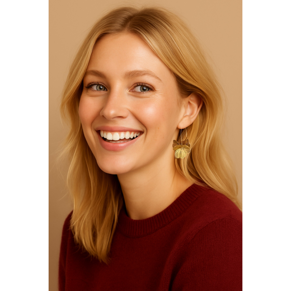 Voeg een vleugje elegantie toe aan je look met de Golden Flower Hanger. Deze verfijnde oorbellen met hun gouden bloemdesign stralen vrouwelijke klasse en zachtheid uit. Perfect om je outfit nét dat beetje extra te geven — of je nu naar kantoor, een lunch of een feestje gaat.