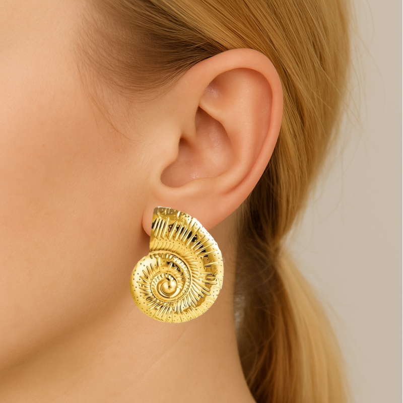 Breng een vleugje zomer en elegantie in je look met deze Golden Shell oorbellen. Geïnspireerd op de natuurlijke vorm van een schelp, stralen ze klasse, warmte en een vleugje avontuur uit. De rijke gouden glans maakt ze perfect voor elke gelegenheid – van een zonnige dag aan zee tot een chique avond uit.