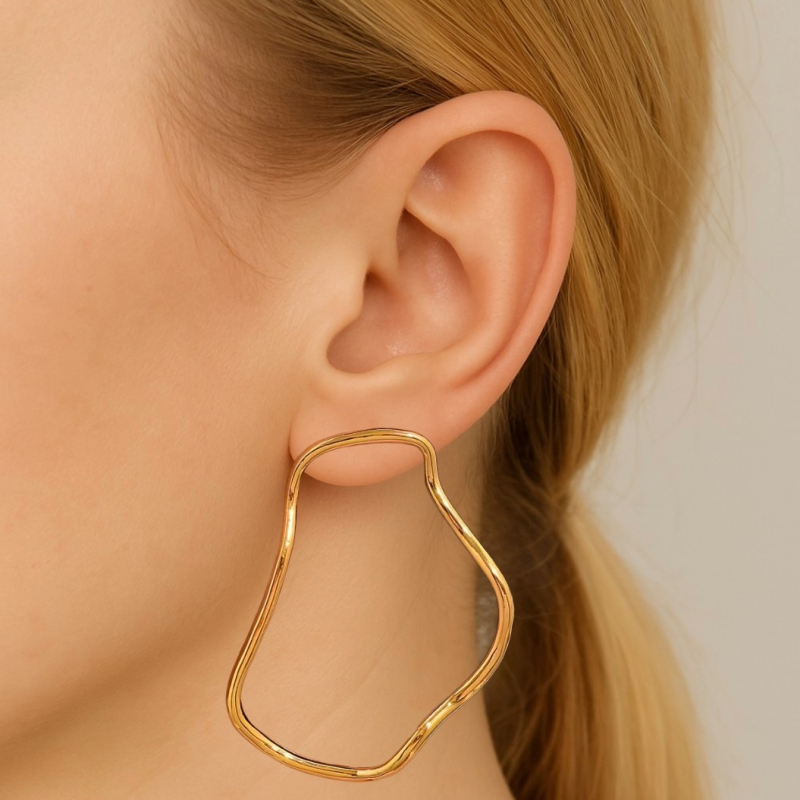 De hoogwaardige gouden afwerking vangt het licht op een subtiele manier, waardoor ze bij elke beweging een warme gloed verspreiden. Perfect voor wie houdt van statement sieraden met een minimalistische, sculpturale touch.