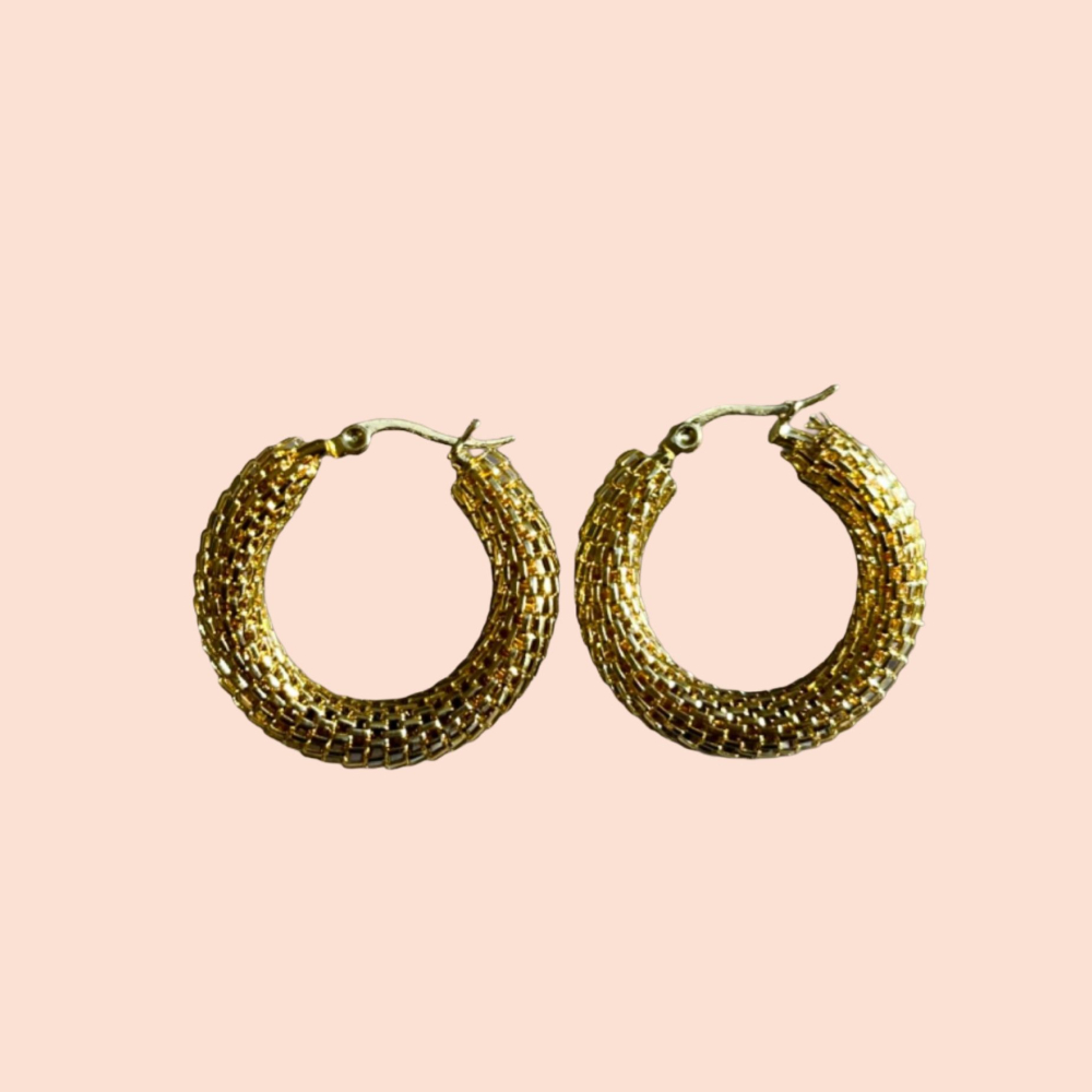 De Happy Hoops zijn die ene klassieker die nooit uit de mode raakt. Met hun subtiele glans en elegante geweven structuur voegen ze instant klasse toe aan elke outfit – of je nu voor casual chic of avondstijl gaat.