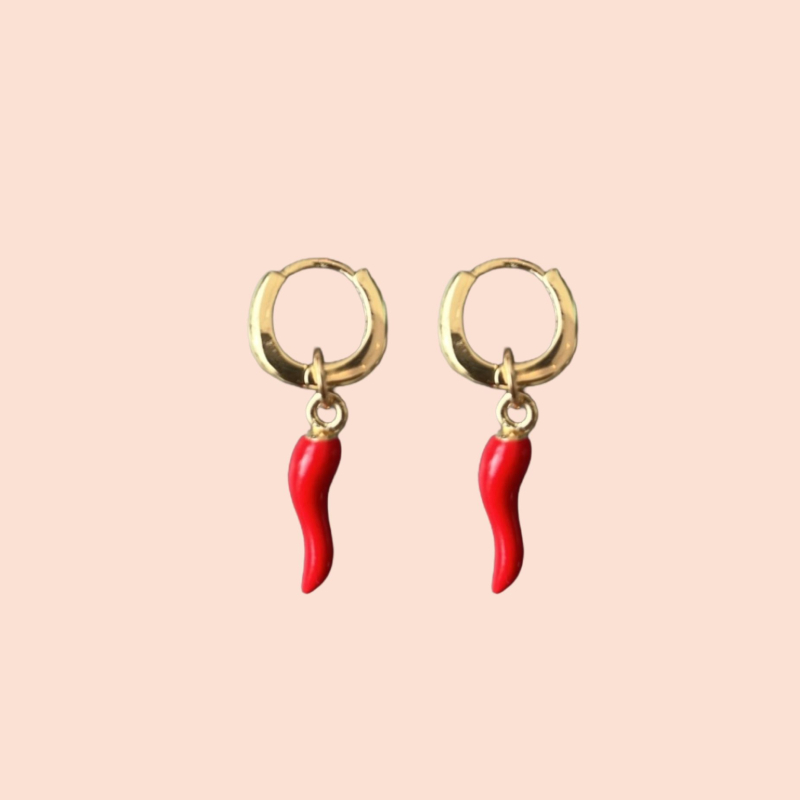 Voeg wat pit toe aan je look met de Hot Pepper oorbel! Deze charmante U vorm gouden hoop met een felrode pepertje-hanger is de perfecte mix van speels, stijlvol en een tikje ondeugend. Of je hem nu solo draagt voor een subtiel accent of combineert met andere oorbellen voor een opvallende ear party – deze oorbel maakt elk moment een beetje hotter.