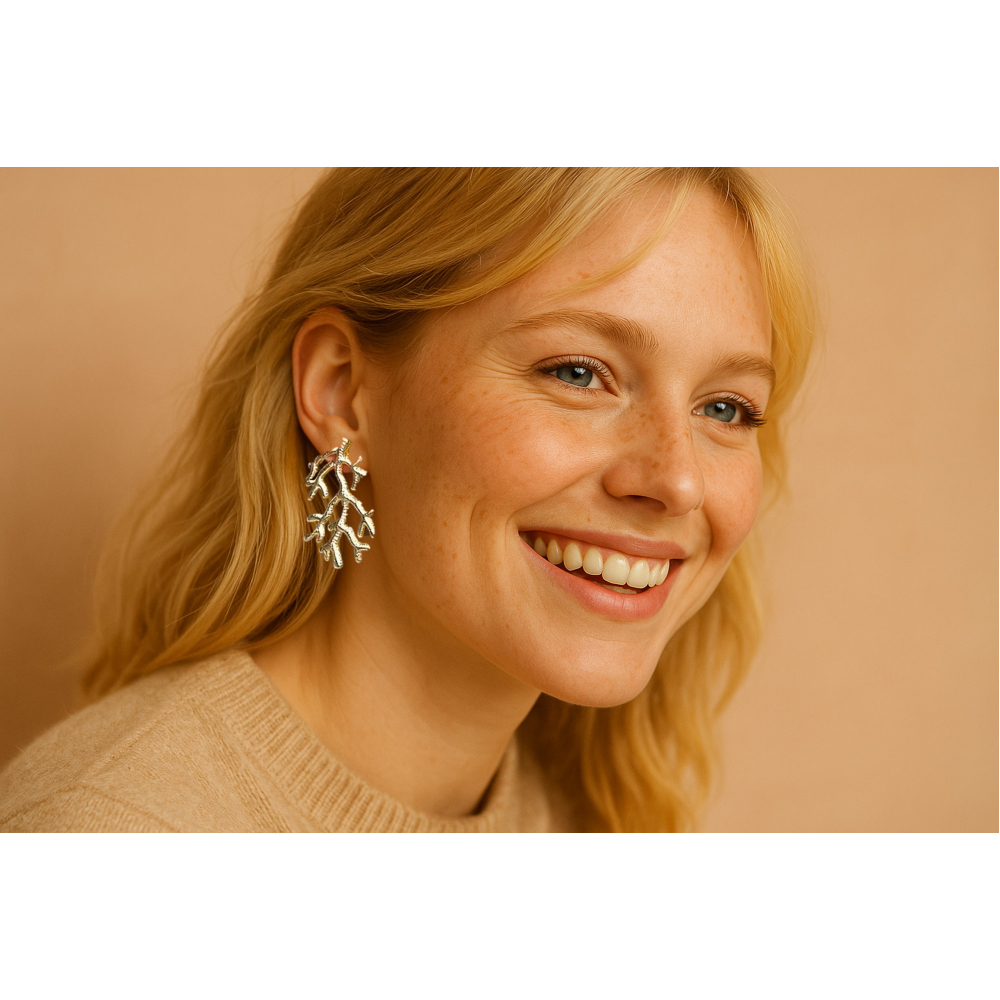 Laat je inspireren door de schoonheid van de zee met deze Coral Beauty oorbellen. Hun verfijnde koraalvorm en glanzende gouden afwerking geven elke look een natuurlijke, elegante uitstraling. Perfect om je outfit net dat beetje extra klasse te geven — of je nu naar kantoor, een diner of een feestje gaat.